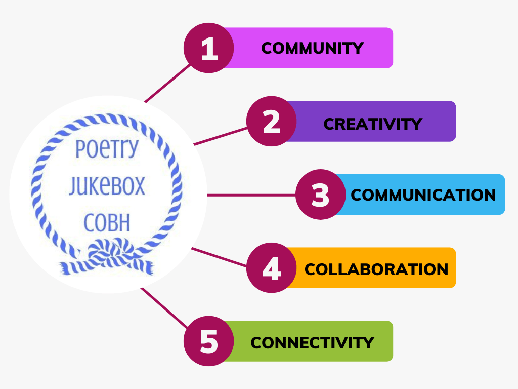 Underpinning the work of Cobh Poetry Jukebox will be a firm commitment to the adherence to our values.